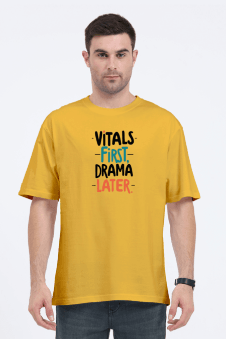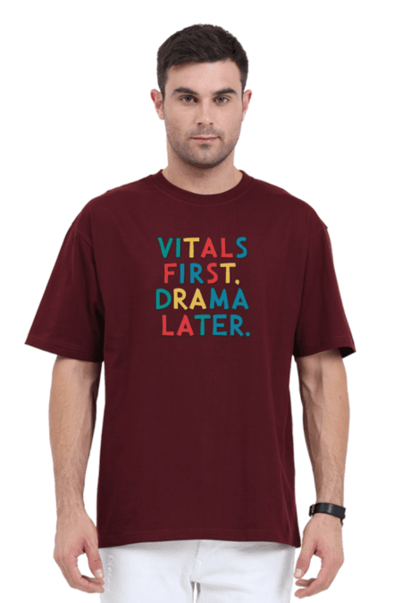 - vitals first drama later-bold colours | Unisex Oversized Classic T-Shirt