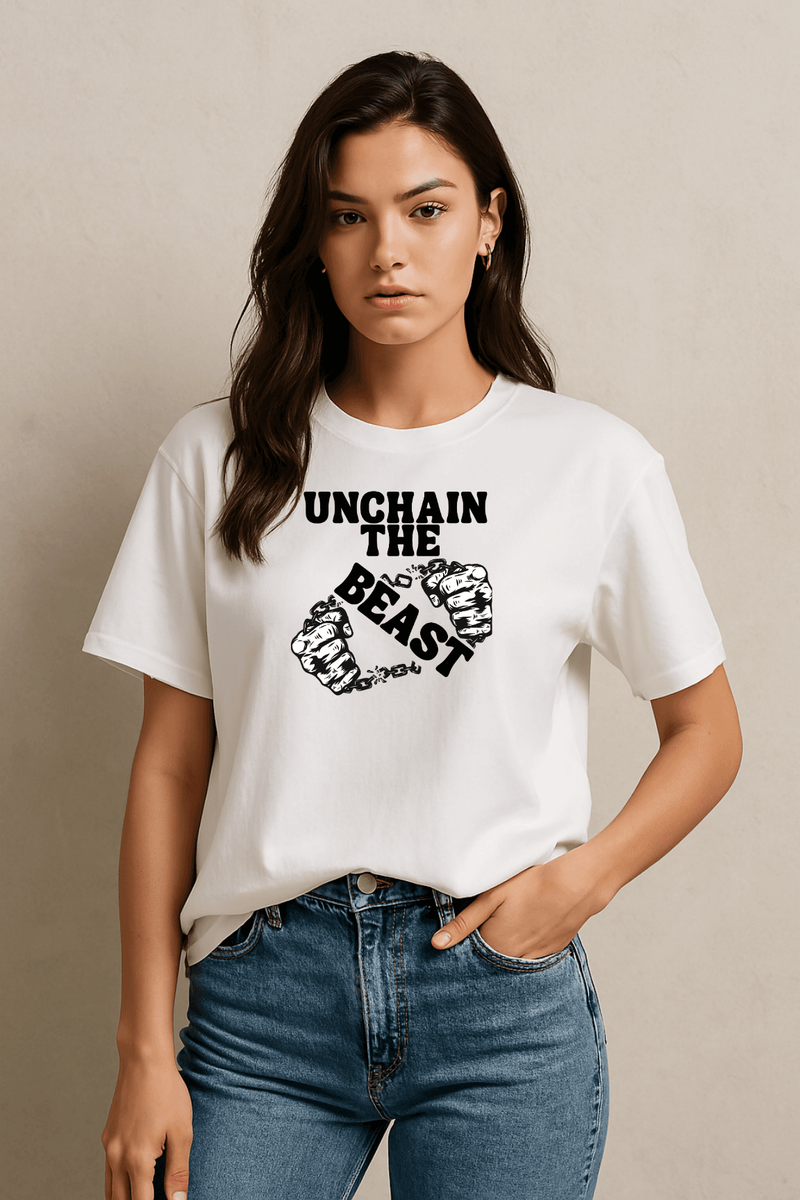 Oversized tees are now a staple of both streetwear and activewear. The Unchain the Beast tee blends the two effortlessly. Pair it with streamlined joggers for training sessions or dress it down with jeans and sneakers for a relaxed, urban vibe. The bold print makes the statement, while the loose silhouette keeps you grounded in comfort.
